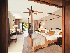 Les Pavillions dispose d'un nombre total de Chambres de 149 avec 64 Chambres Supérieures (45 m2) qui peuvent accueillir 2 adultes ou 2 adultes + 1 enfant ou 2 adultes + 1 bébé et dont la moitié se situe au rez-de-chaussée et l'autre moitié au premier étage. 15 Chambres Deluxe (46 m2) qui peuvent accueillir de 2 adultes. 10 Suites Junior (52 m2) peuvent accueillir de 2 adultes ou 2 adultes + 1 enfant ou 2 adultes + 1 bébé. 15 Suites Océan Junior (57 m2) qui peuvent accueillir de 2 adultes. 45 Suites Prestige Junior (63 m2) qui peuvent accueillir 2 adultes. Toutes les chambres et suites ont un balcon ou une terrasse avec vue sur la mer, a ir conditionné et ventilateur de plafond, salle de bains avec baignoire, douche et toilettes séparées, ligne directe internationale, téléphone additionnel dans la salle de bains, télévision par satellite et chaînes de musique, écran LCD TV et DVD, miroir grossissant dans la salle de bains, système de musique Ipod (dans les suites), minibar, Wifi dans tout l'hôtel (payant sauf dans le salon Internet), coffre-fort individuel, sèche-cheveux et prise rasoir, bouilloire électrique, service de thé et café offert, et prises électriques 220-240 volts.